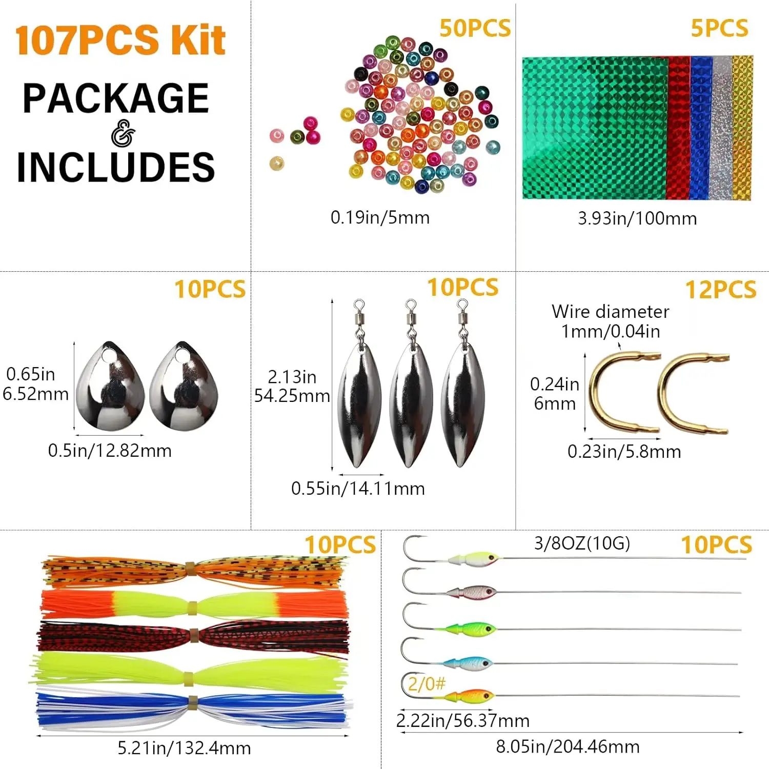 107pcs Fishing Lure Making Kit DIY Spinner Making Kit, Inline Spinner Baits for Bass Fishing Trout Freshwater Gift for Men