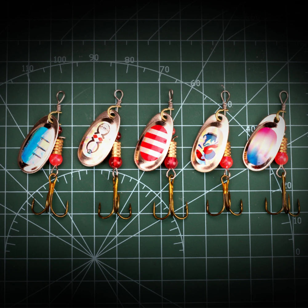 10Pcs Spinner Bait Fishing Spoon Lure 360 Degree Rotating Treble Hooks Wobblers 6cm Artificial Bass Bait for Freshwater Seawater Features: