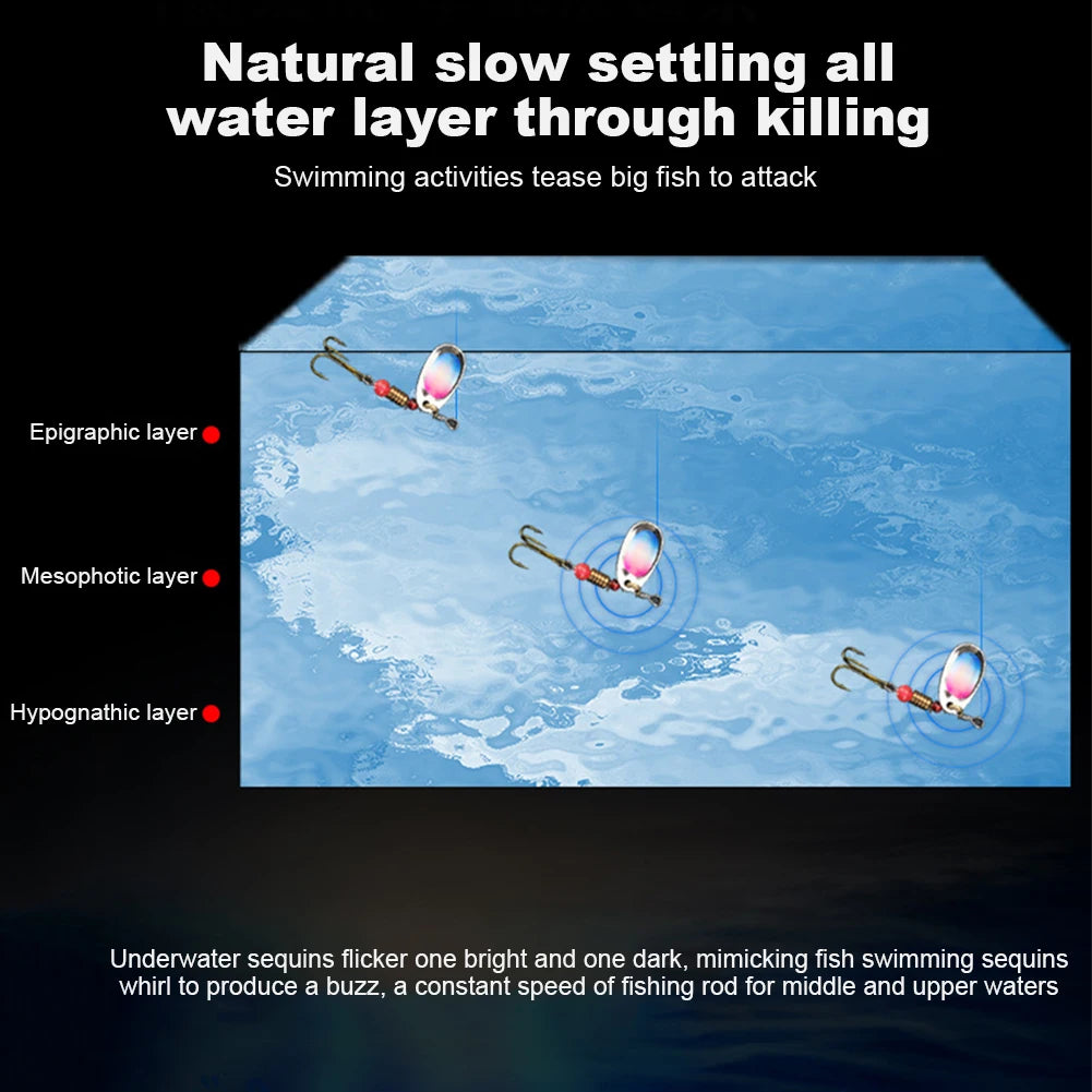 10Pcs Spinner Bait Sequins Bait 360 Degree Rotating Treble Hooks Wobblers Artificial Bass Bait for Freshwater Seawater