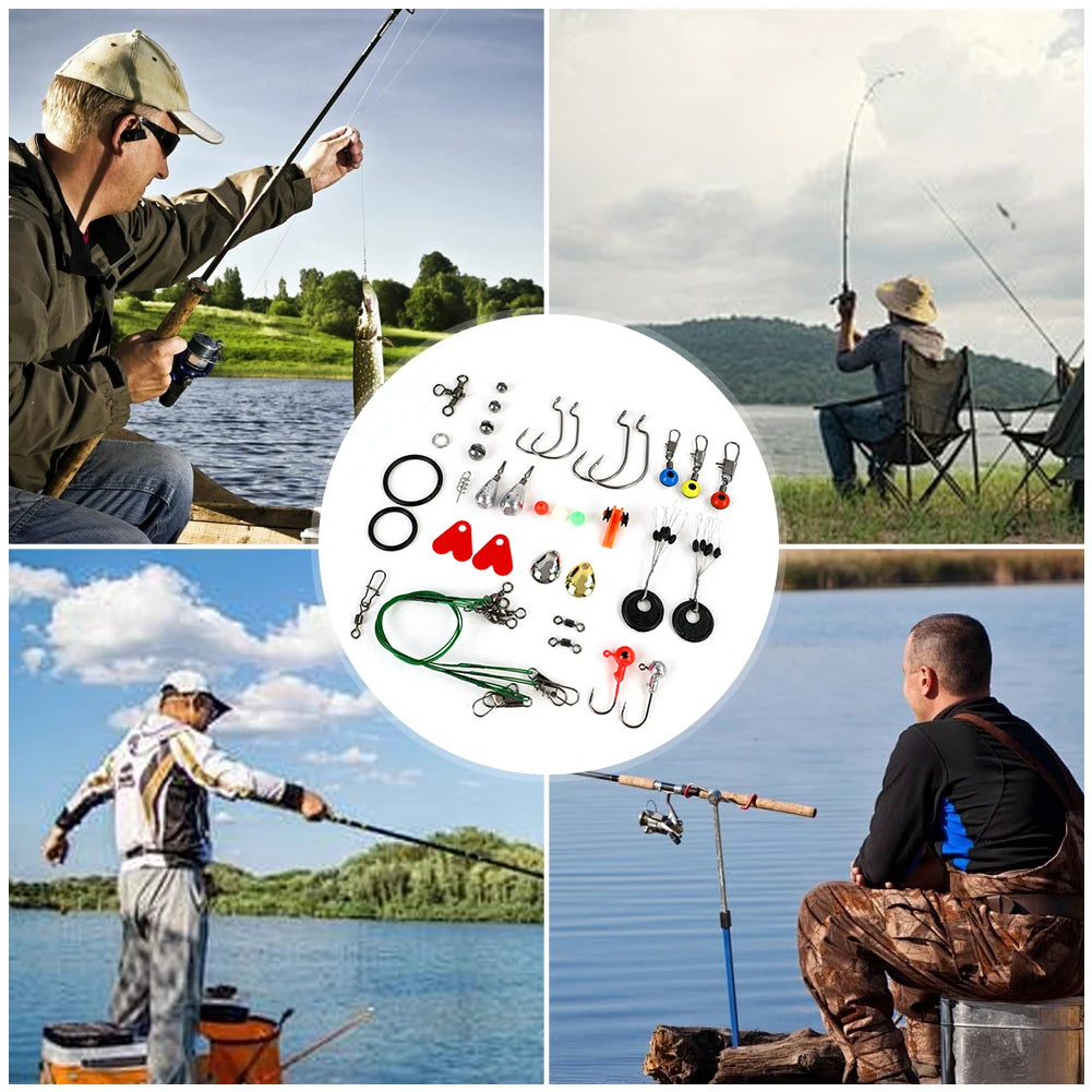 187pcs Fishing Tools Accessories Kit Set with Fishing Hooks Sinker Weights Swivels Snaps Fishing Set Carp Fishing Accessories