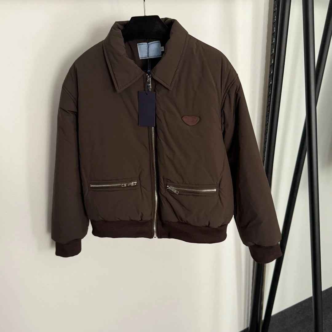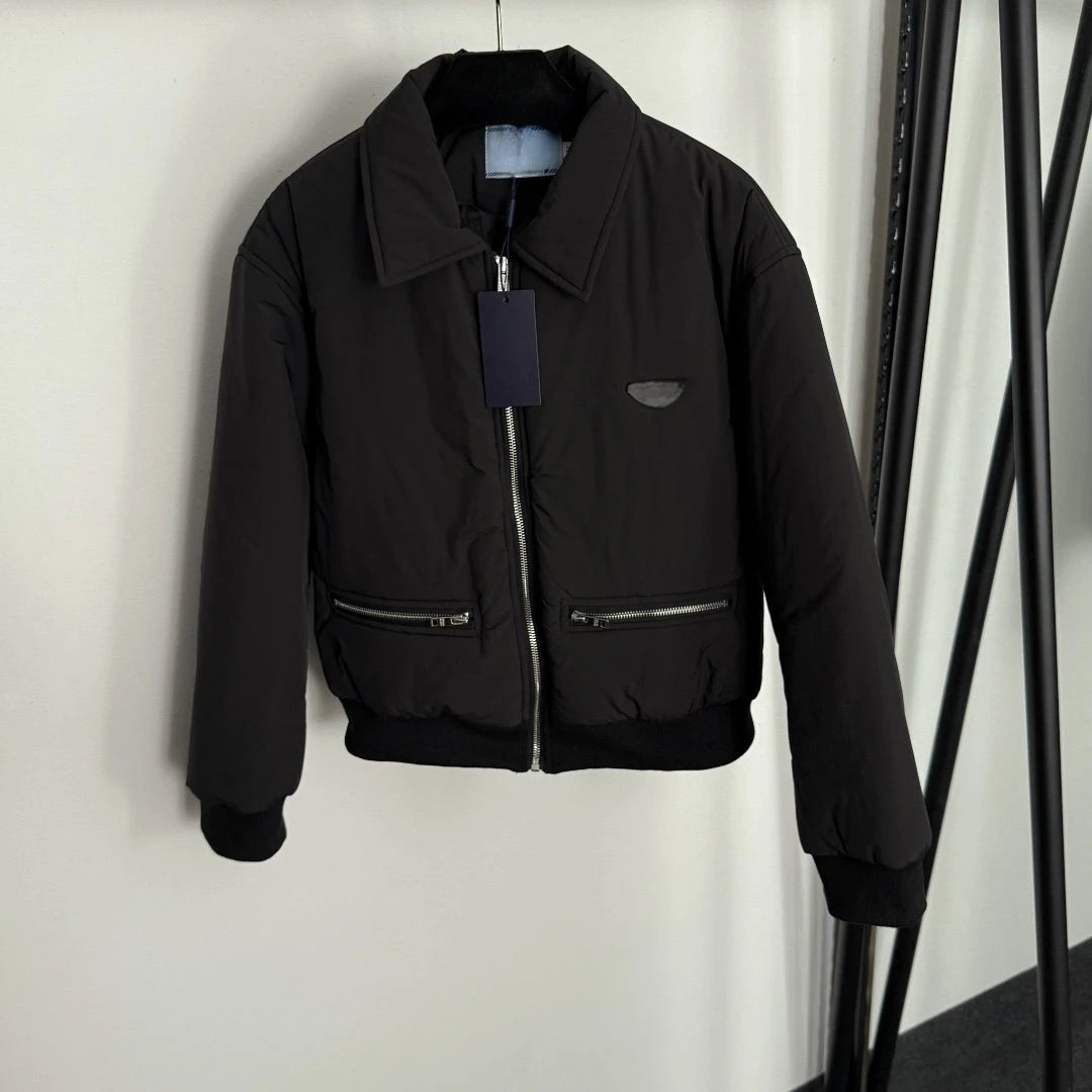 2025 Autumn/Winter New Style Triangle Logo Hooded Down Jacket for Women - Casual and Warm Short-Sleeved Coat