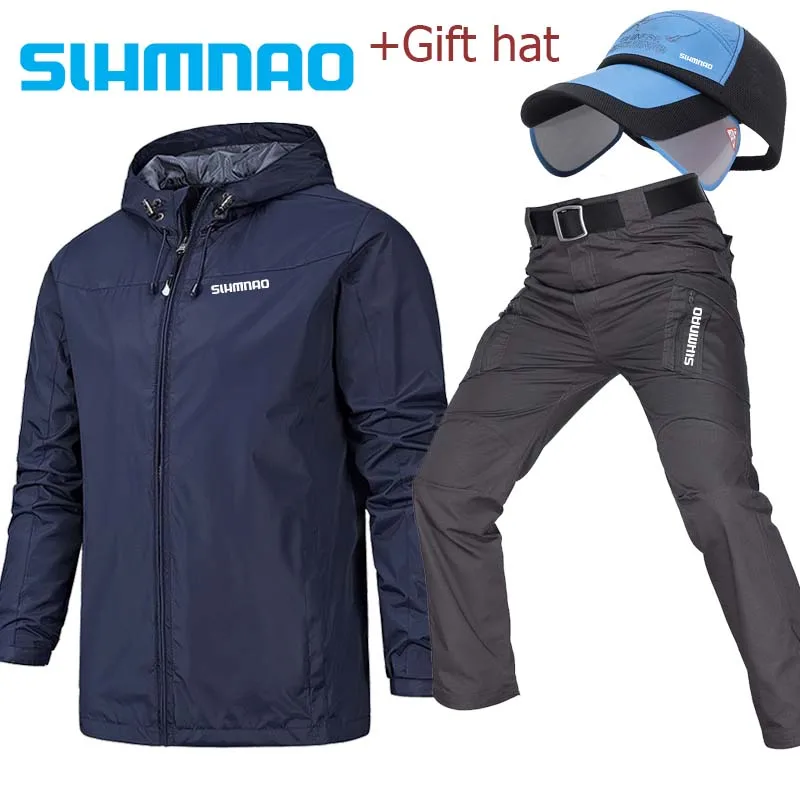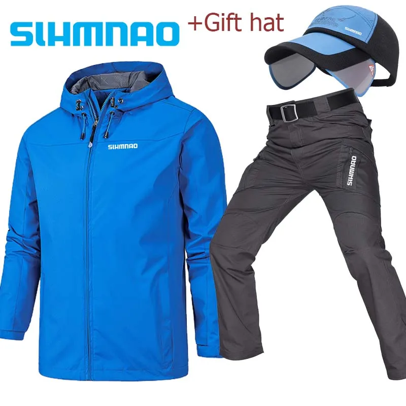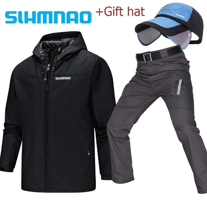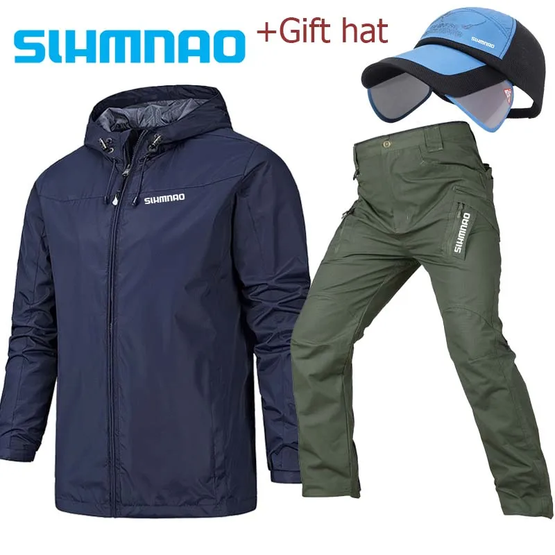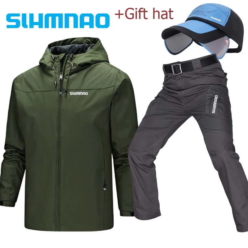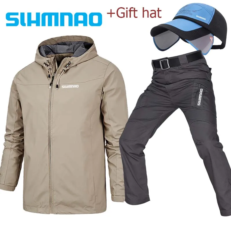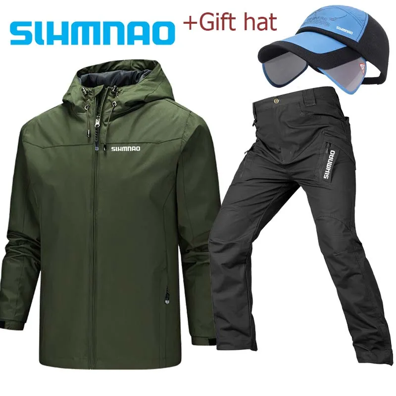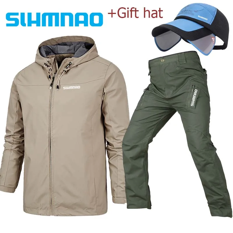2025 Spring and Autumn Hooded Waterproof Fishing Set, Outdoor Hunting Tactical Pants, Mountaineering Cycling Clothes