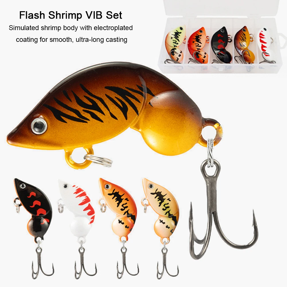 5Pcs Wobbler with Treble Hooks Crankbait Swimbait Bionic Shrimp Lures Fishing Baits Fishing Tools for Pike Bass Trout