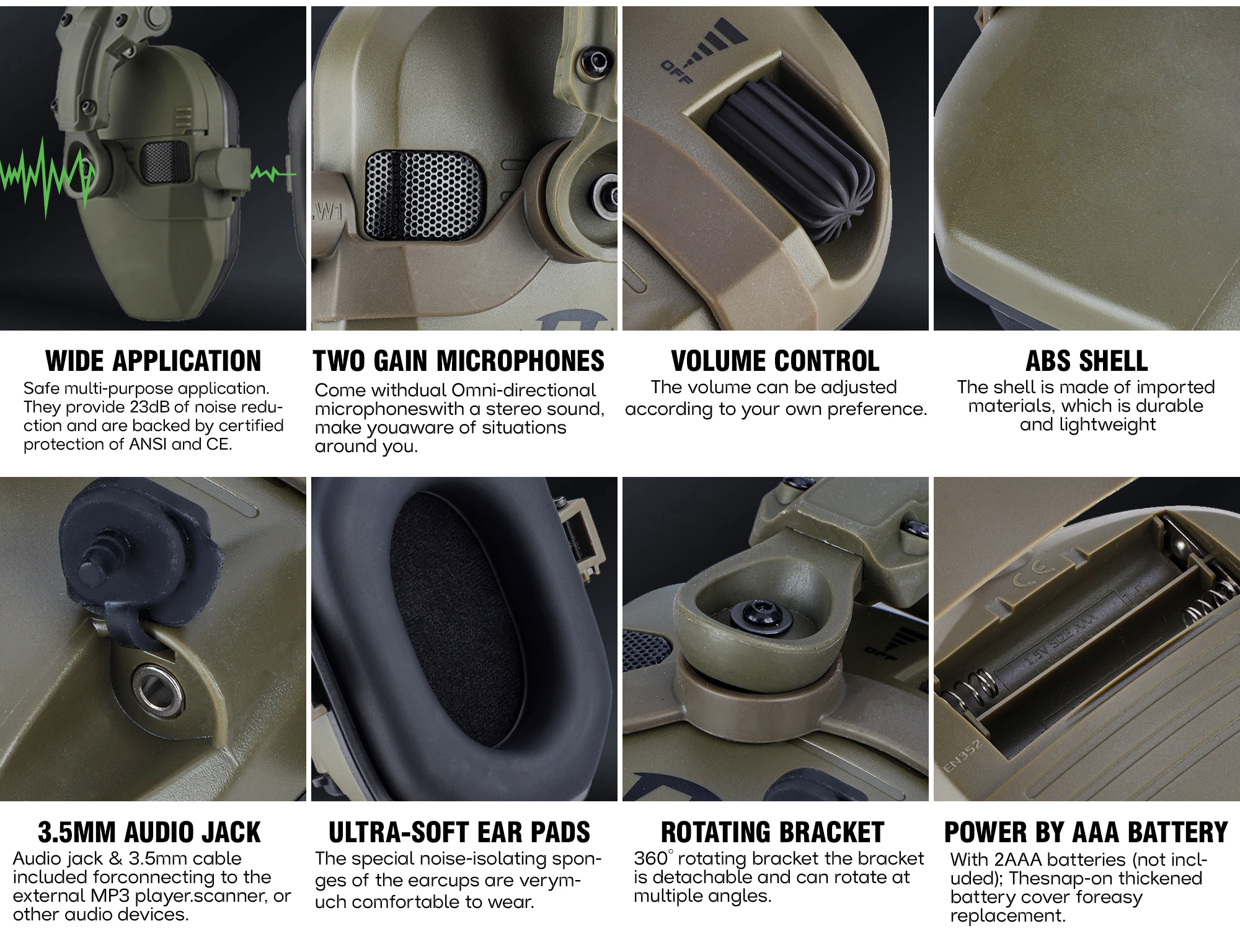 Active Helmet Mounted Earmuffs For Shooting Electronic Hearing Protection Ear Protect Noise Reduction Active Hunting Headphone