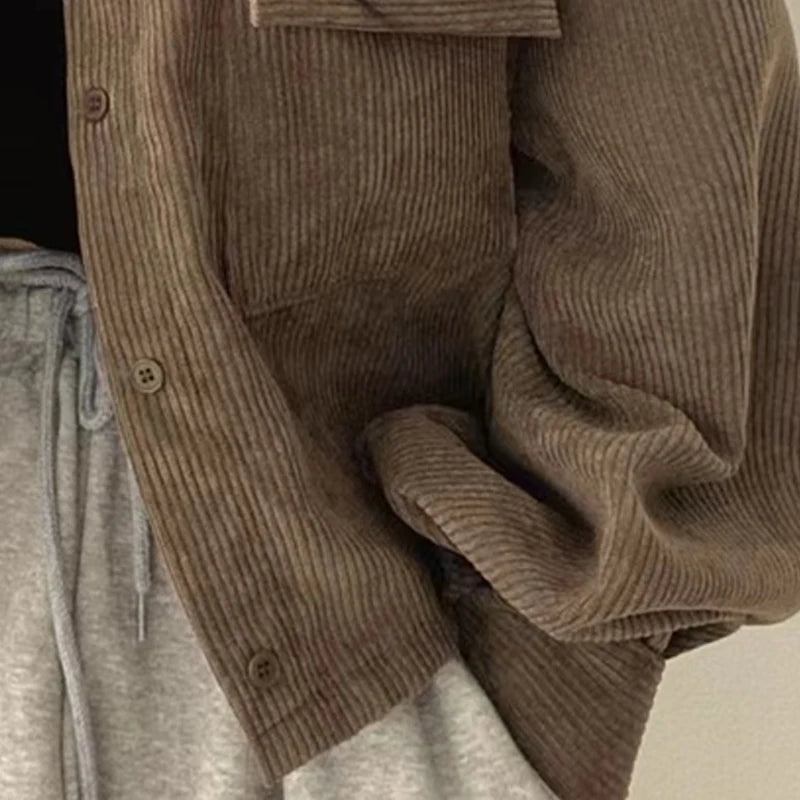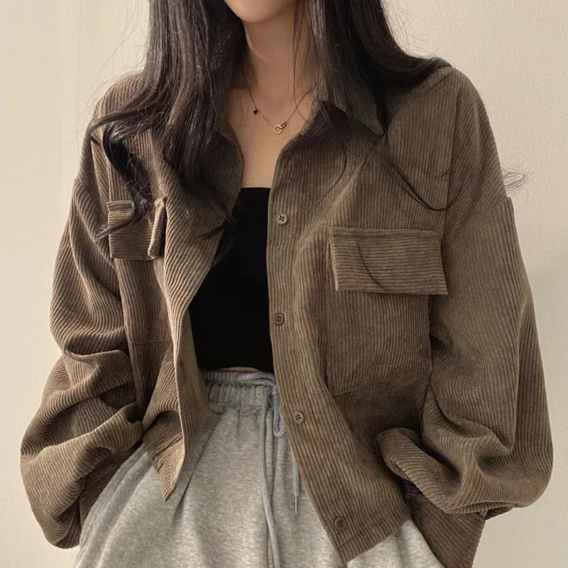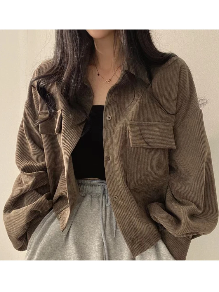 Autumn Retro Versatile Single Breasted Turndown Collar Long Sleeved Jacket for Women Coffee Casual with Pockets Loose Coat