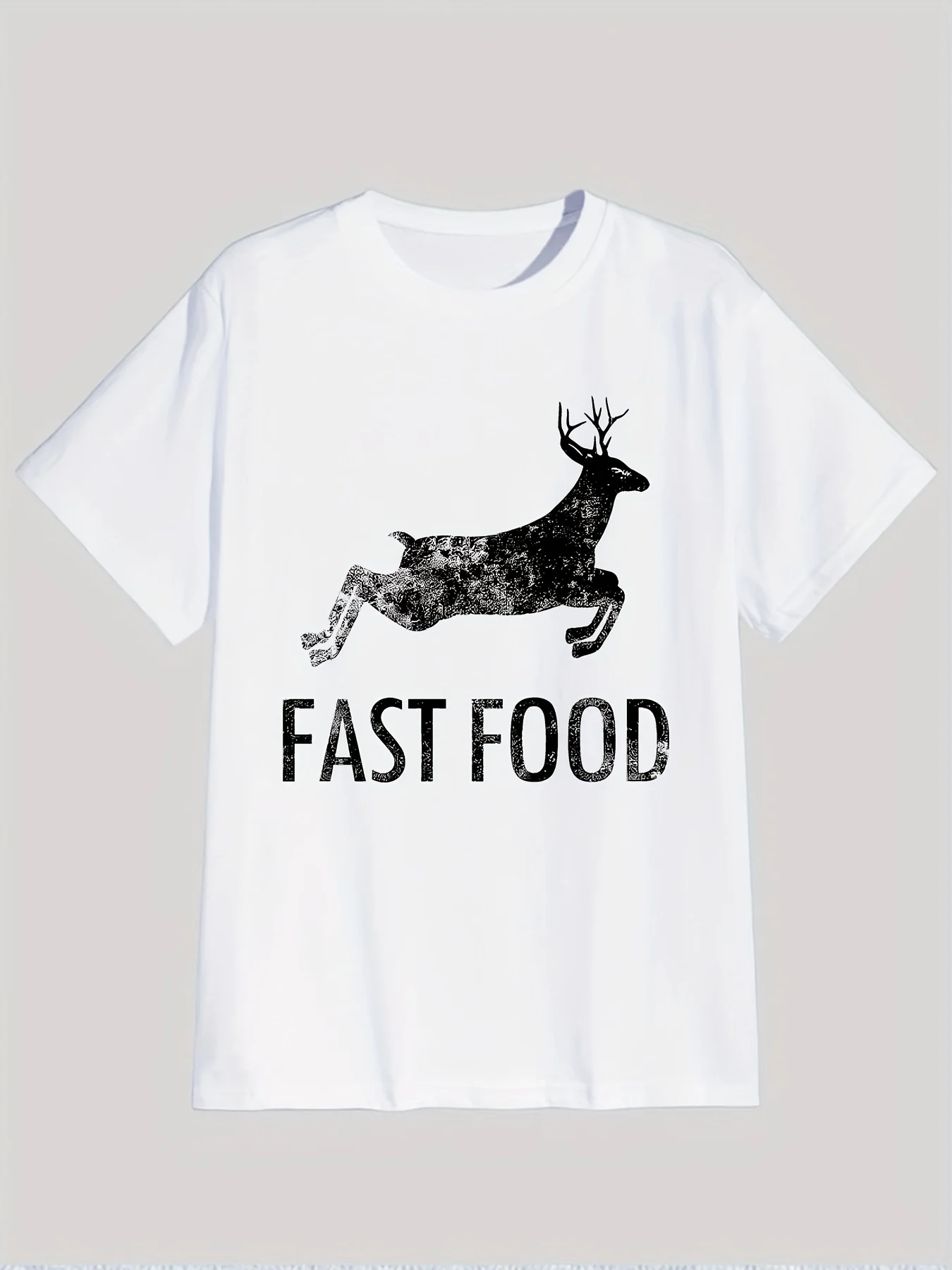 Funny Deer Hunting Tee - Men's Short Sleeve Graphic T-Shirt with Fast Food Print