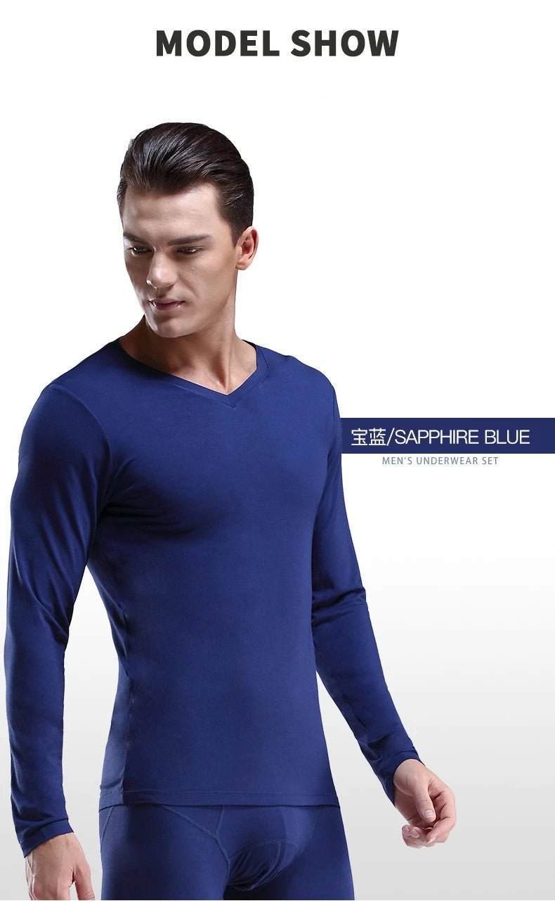 Mens Thermal Undershirt Long-sleeve Men Thermal Shirt V-neck Thin Underwear Top Autumn Winter Underwear