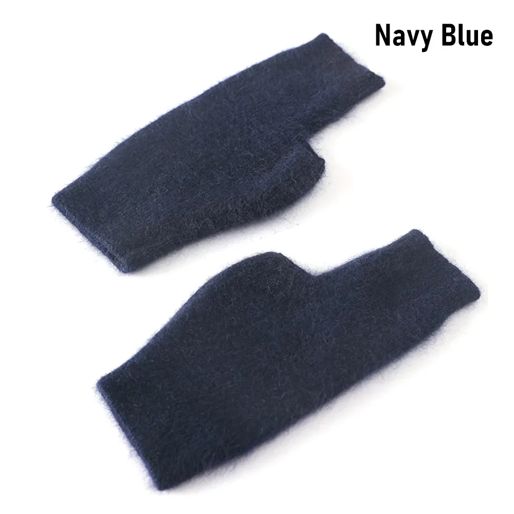 Mink Cashmere Gloves Autumn Winter Women Girl Gloves Fingerless Warm Knitted Wool Mitten Wrist Length Thumb Hole Mitts Fashion