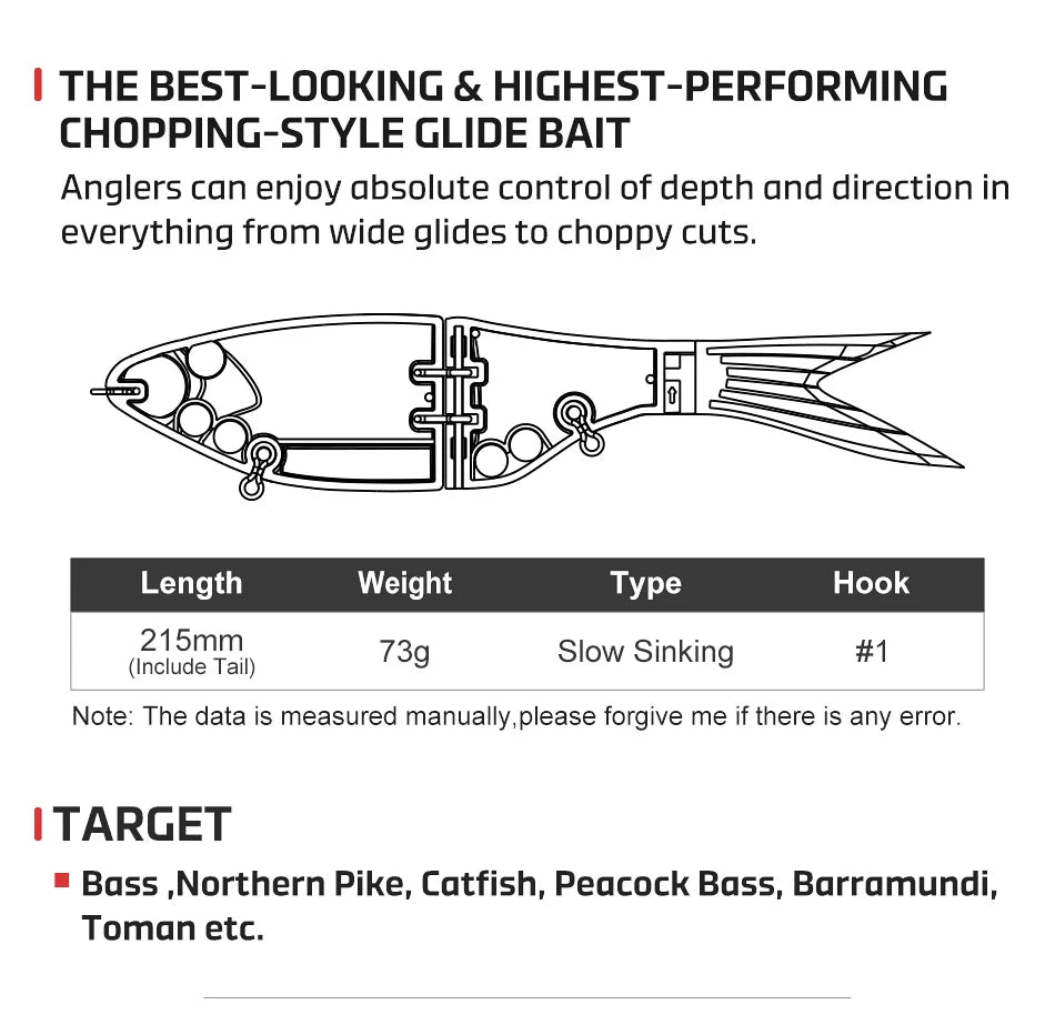 Target: Bass ,Northern Pike, Catfish, Peacock Bass, Barramundi, Toman etc