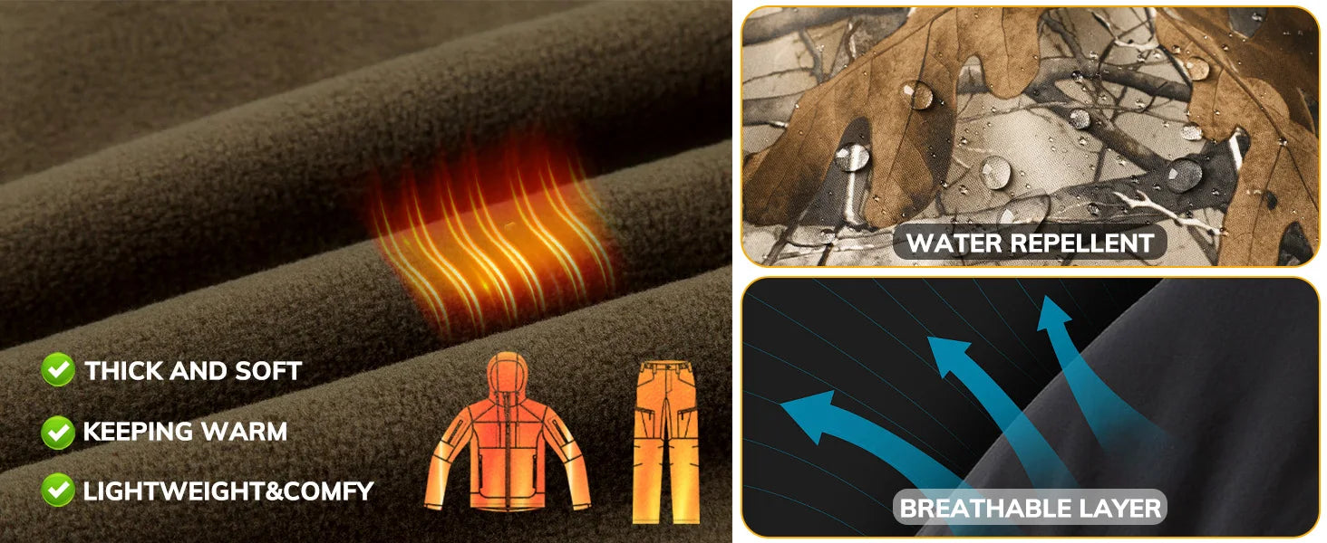 Quiet Hunting Pants Softshell Fleece-Lined Camouflage Clothes Clothing Gear for Men
