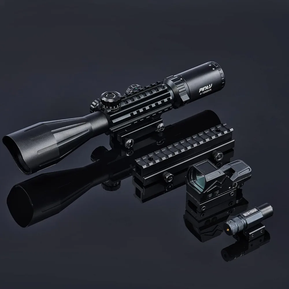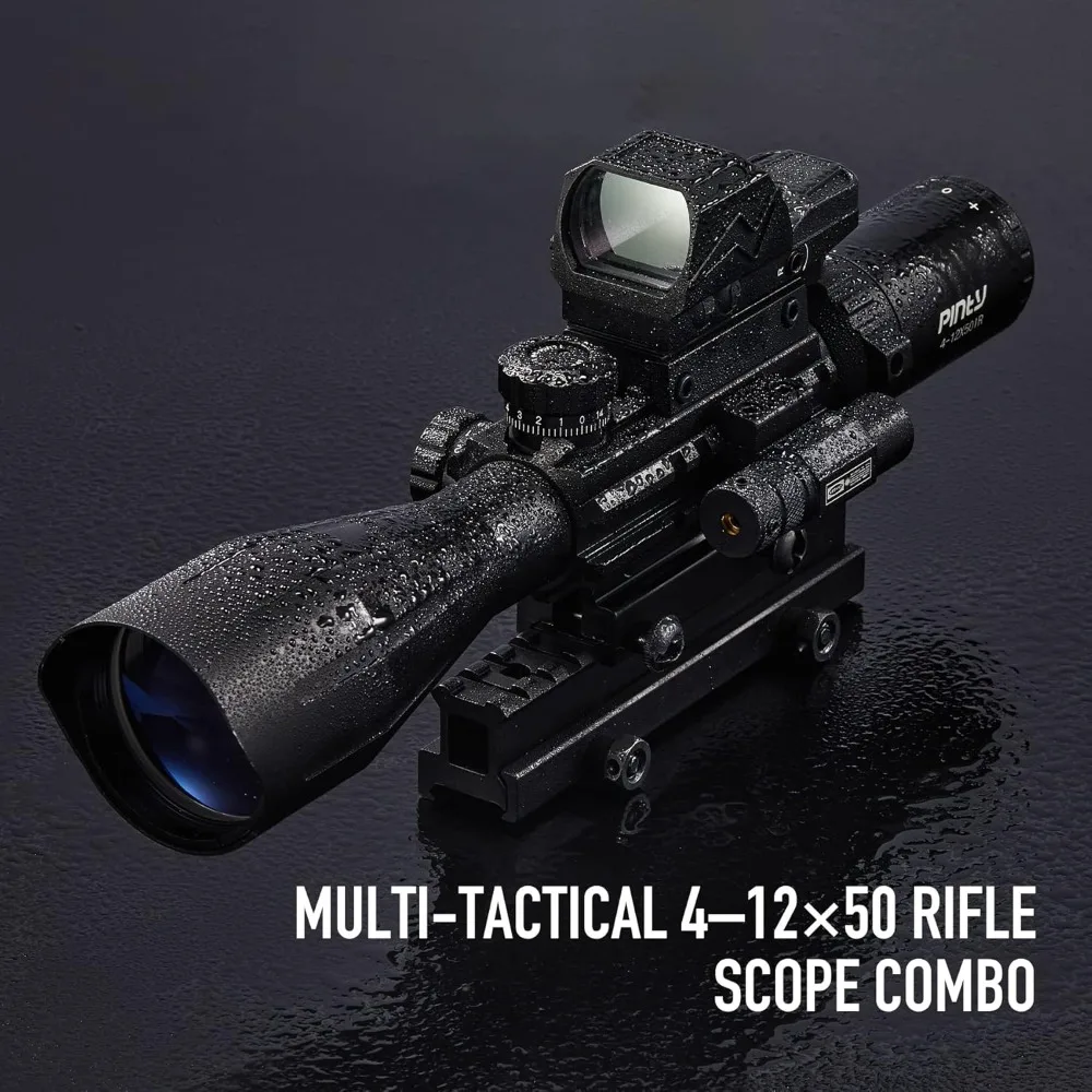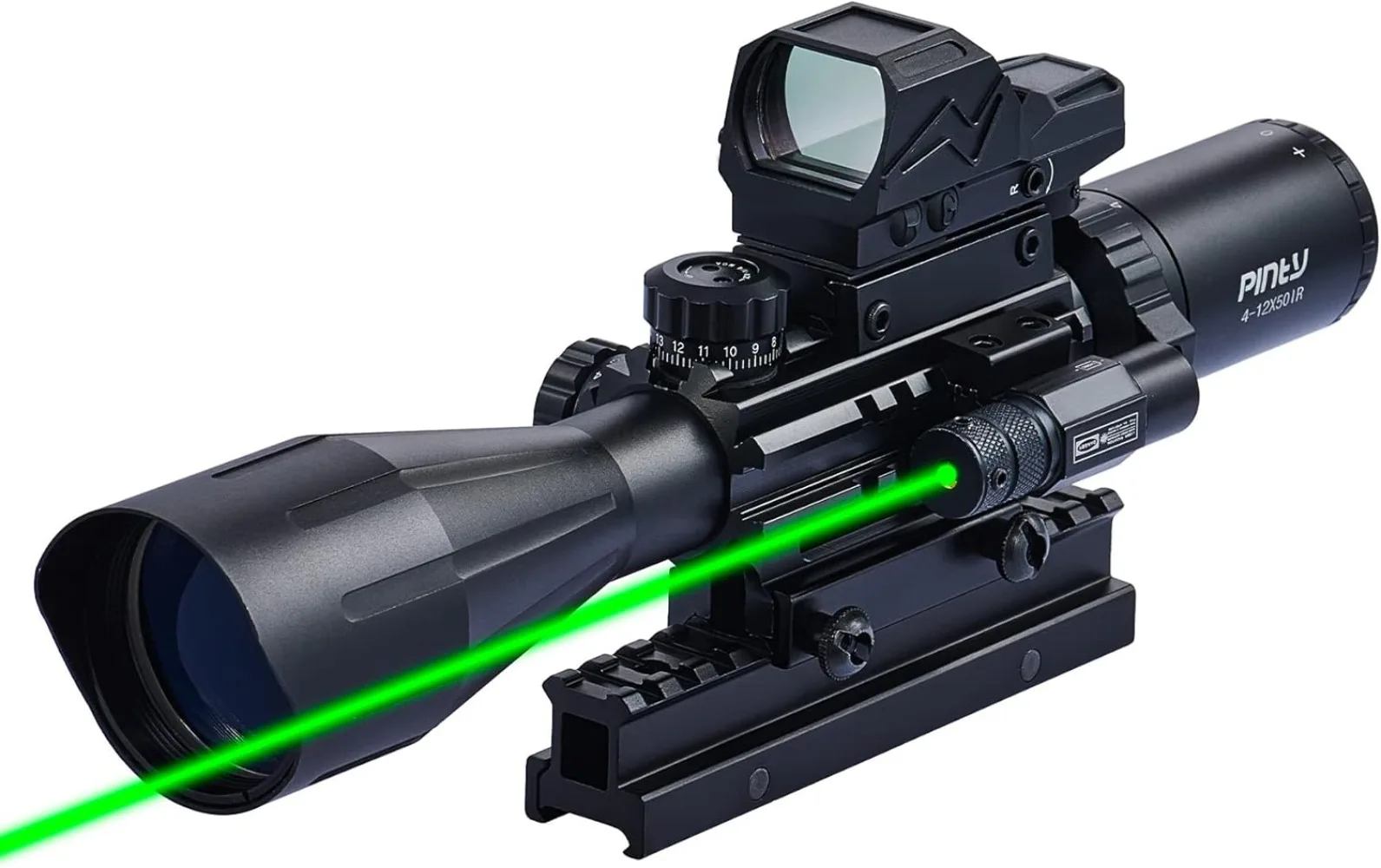 Rifle Scope Red Dot Laser Combo 4-12x50 Illuminated Optics with 4 Reticle Red Green Reflex Sight, Green Dot Laser Sight