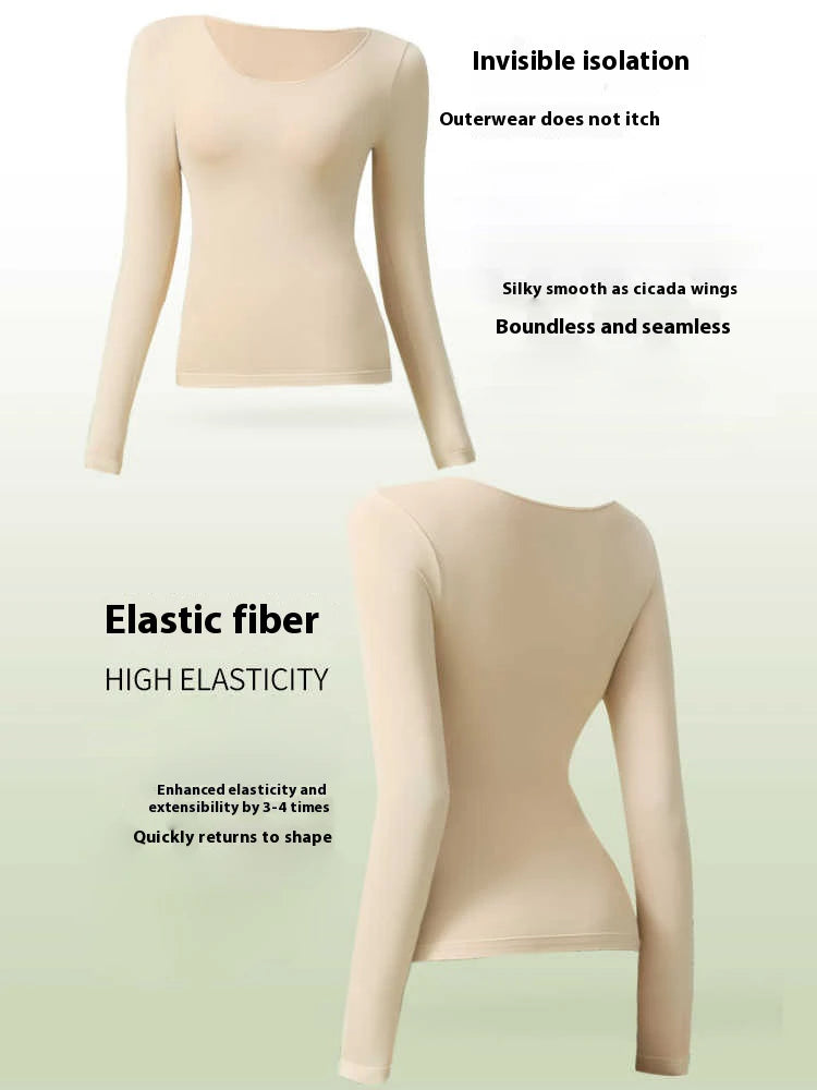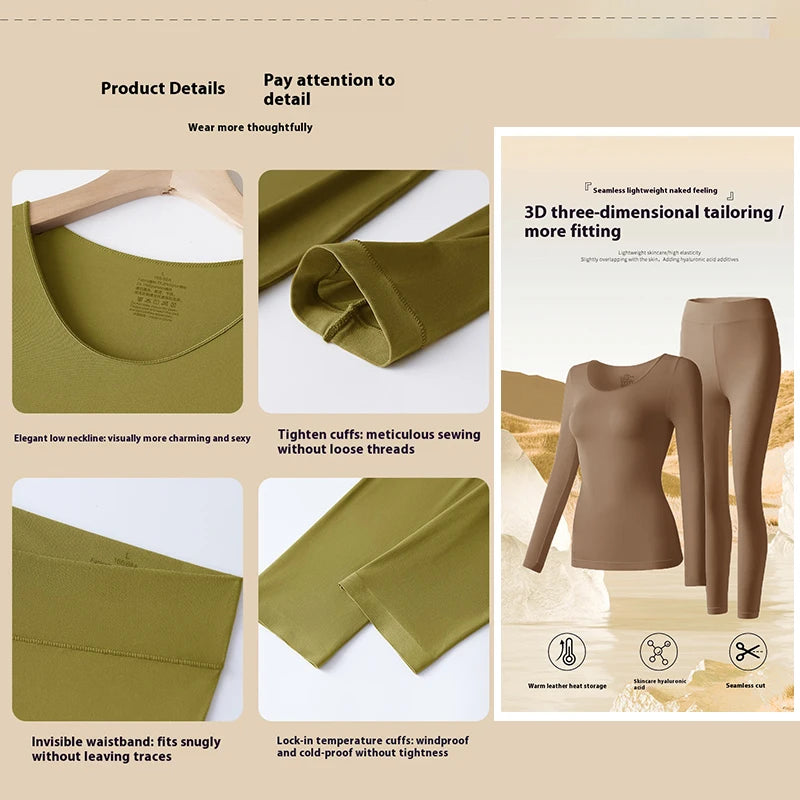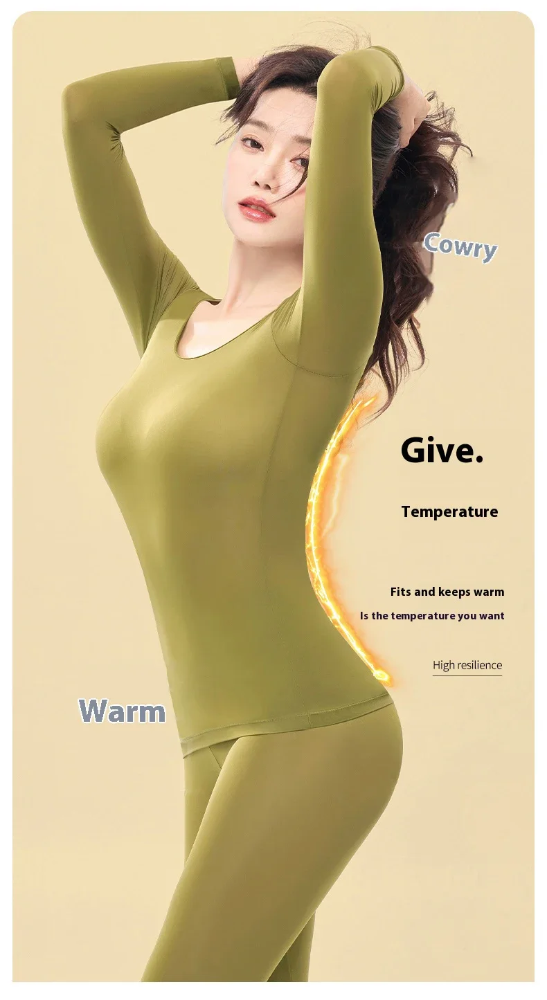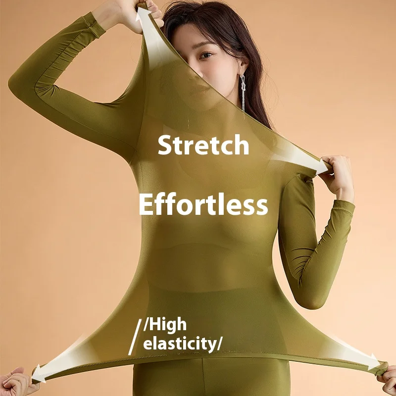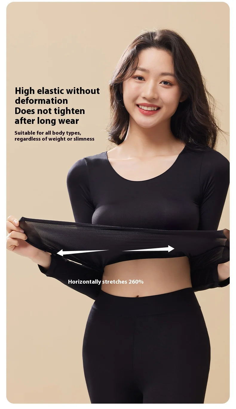 Women Warm Thermal Underwear Ultra Thin Traceless Long Sleeves Clothes High Elastic Set Black Tech Constant Temperature Lingerie