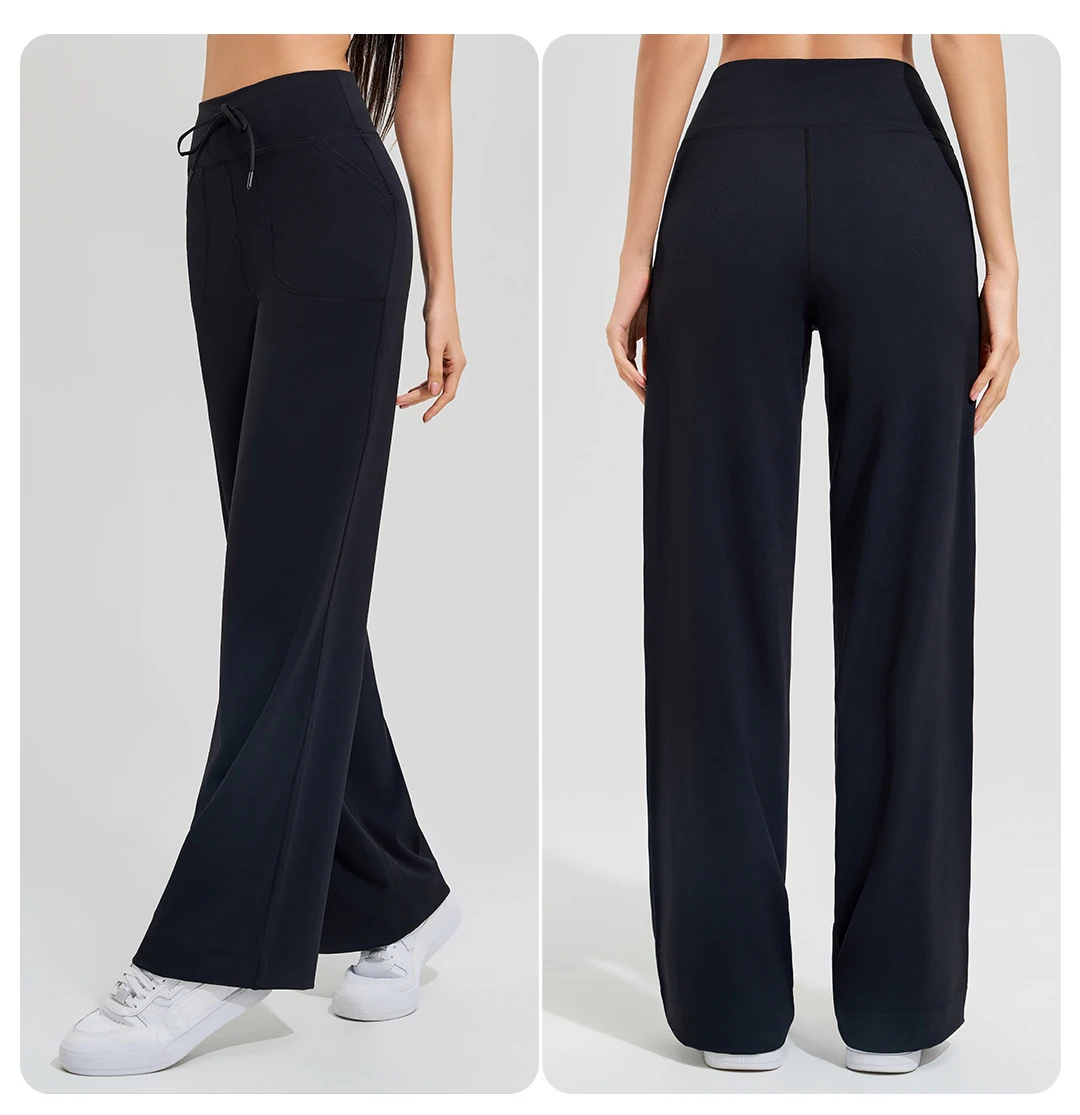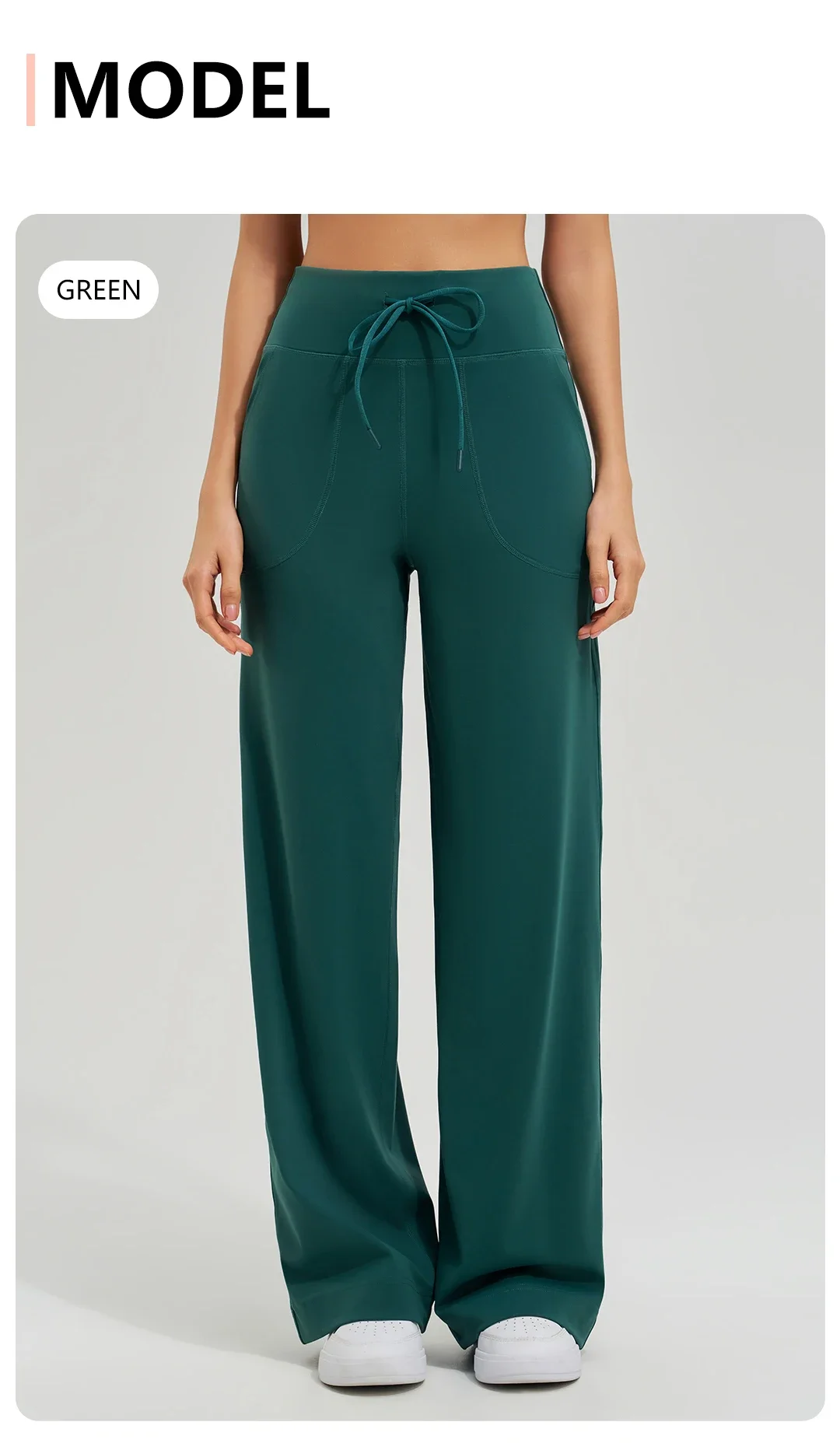 Women's High Waist Yoga Pants Gym Loose Running Yoga Pants Double Side Brushed with Pockets Pants Ties