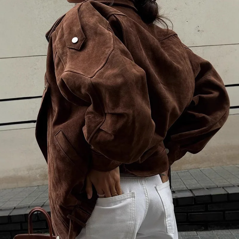 Women's Retro Jacket 2025 Casual Loose Brown Fashionable Outerwear for Ladies